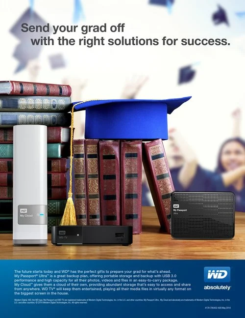 The marketing department produces several seasonal campaigns throughout the year including Father's Day, Graduation and Back to School. These are used by the channel marketing team and made available to retailers such as the WD Store, Best Buy, Costco, and Staples.